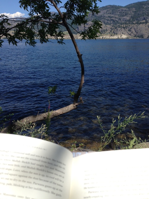 Me, inhaling “And The Mountains Echoed” at the lake this week